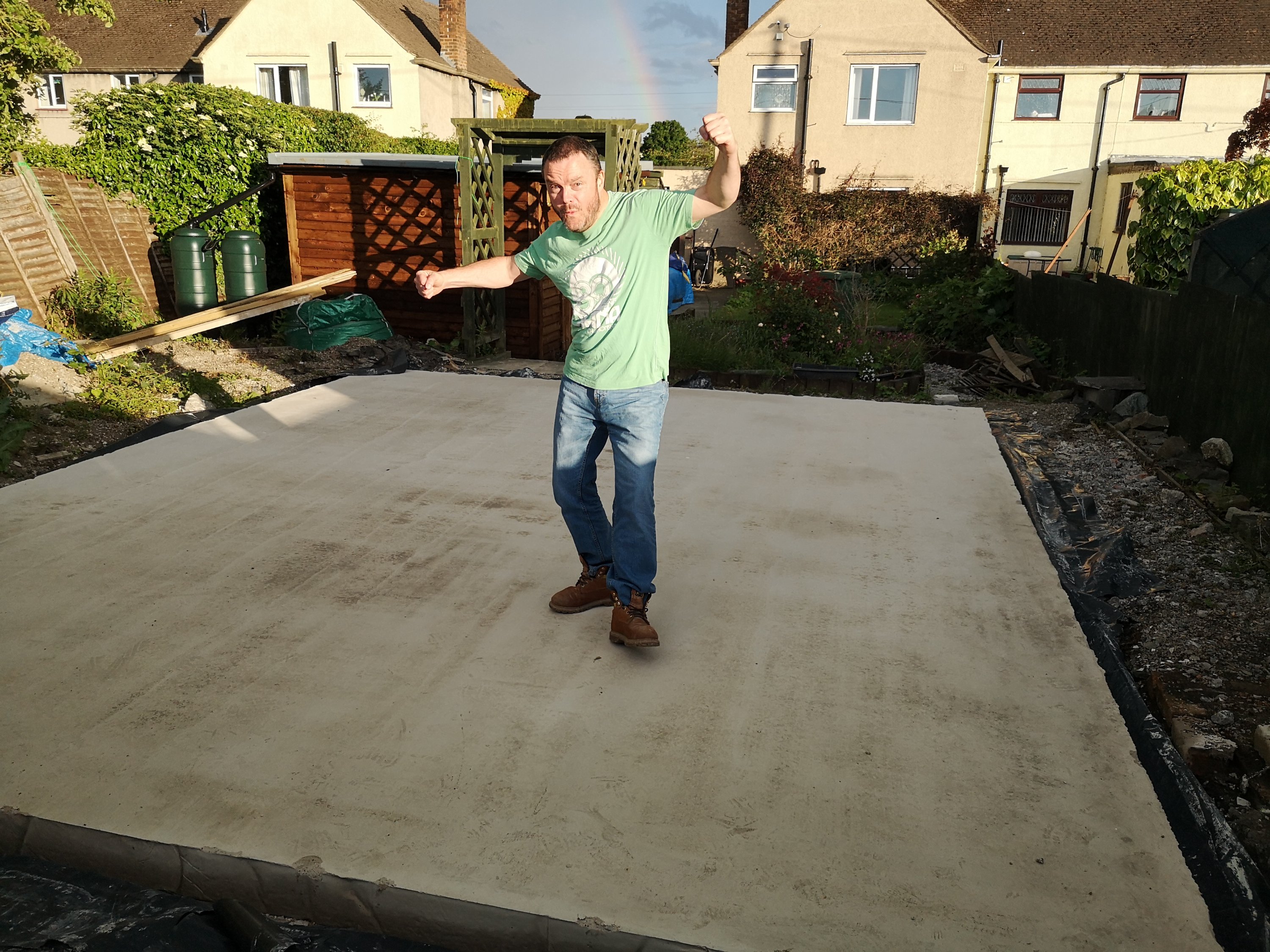 This was the middle point of the major project, that’s my pal Dave standing on the base of his new garage/shed/workshop which we were building at the time, it’s about the only part of the project we didn’t do ourselves.